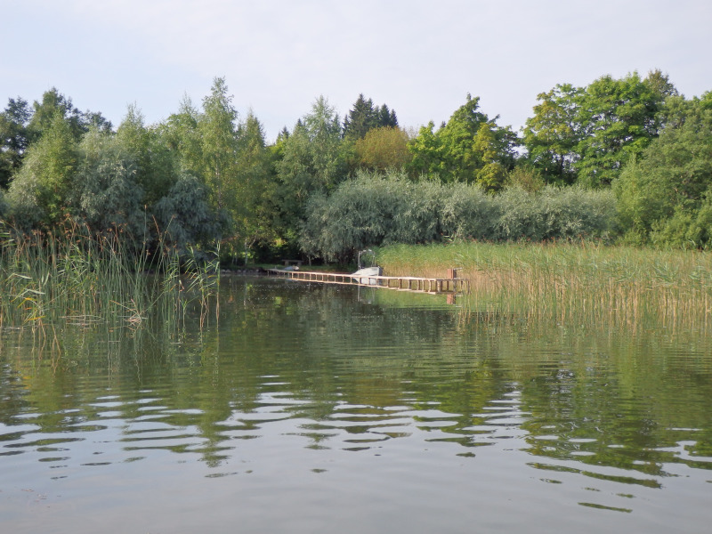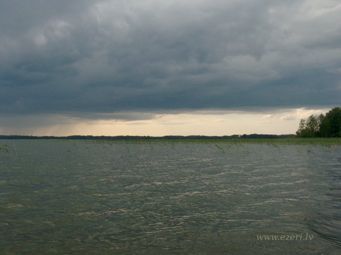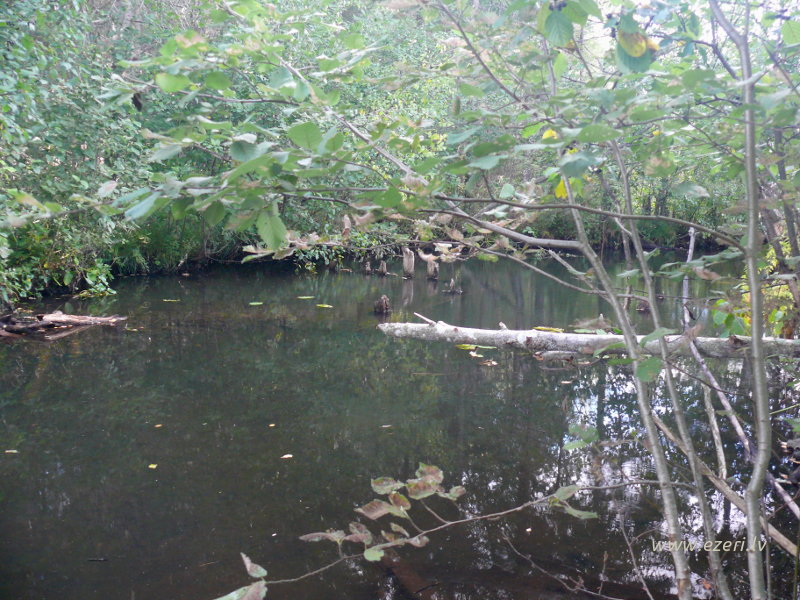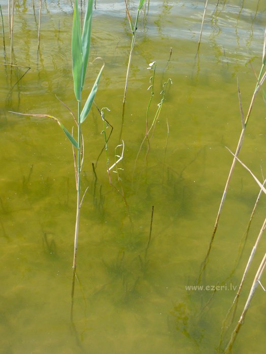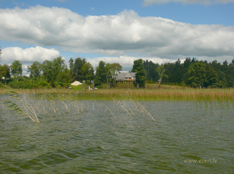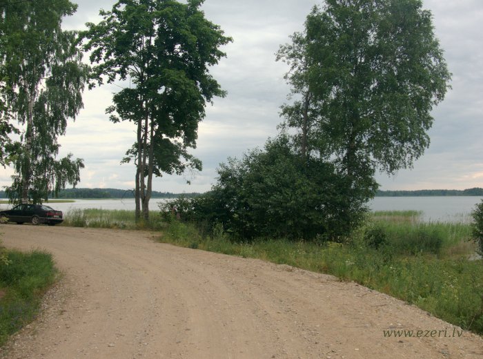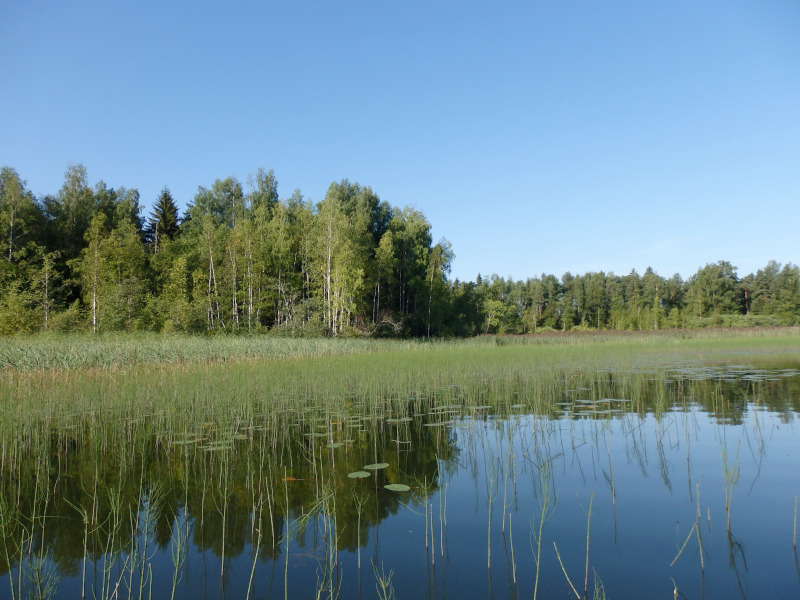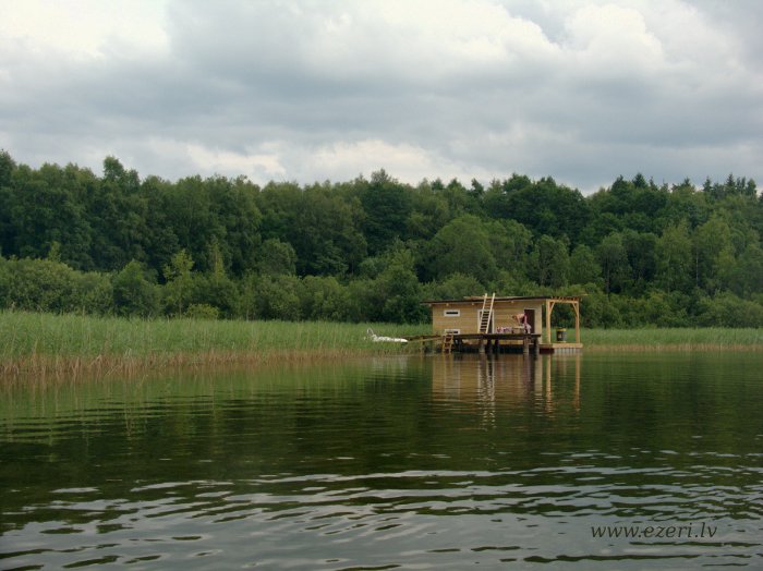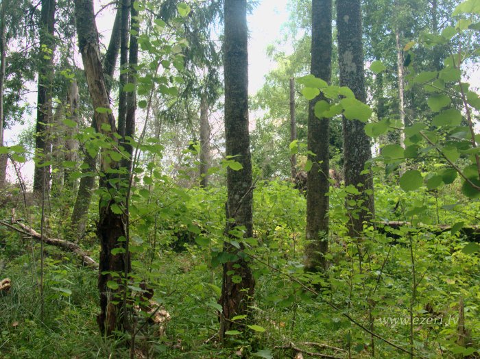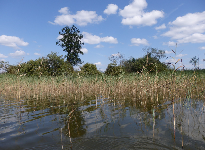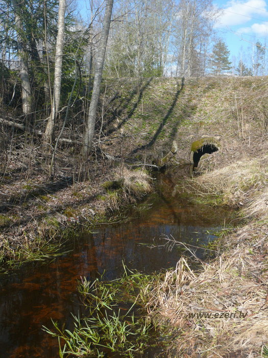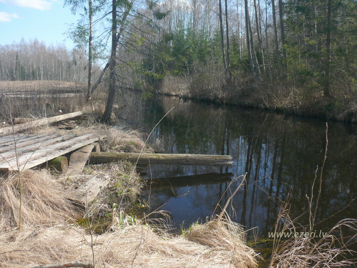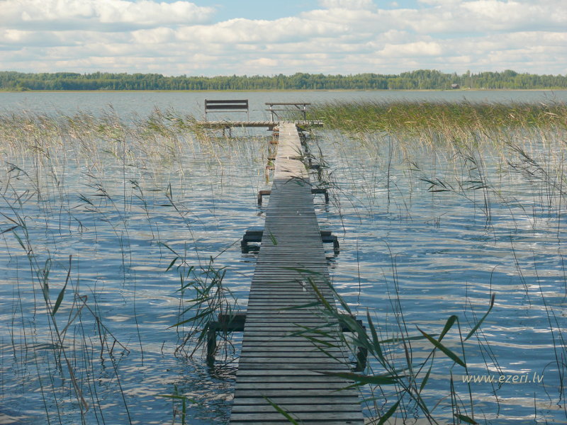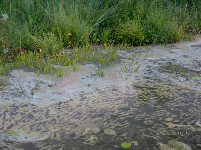 photograph Gar ūdeni zems, krūmiem un niedrēm aizaudzis krasts, pēc 20 m - krasta valnis. |