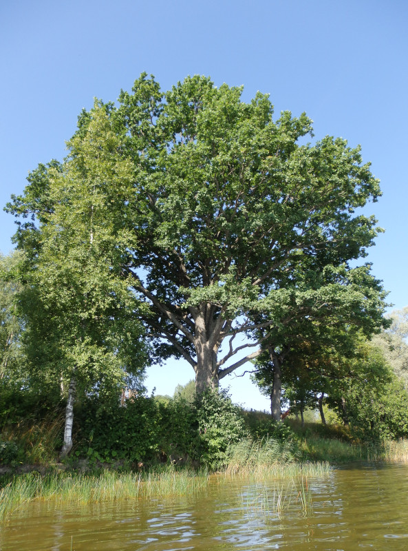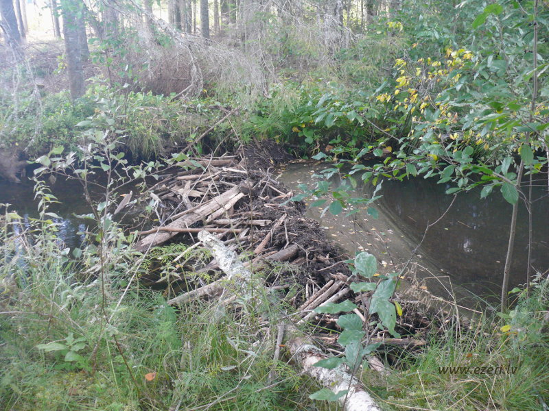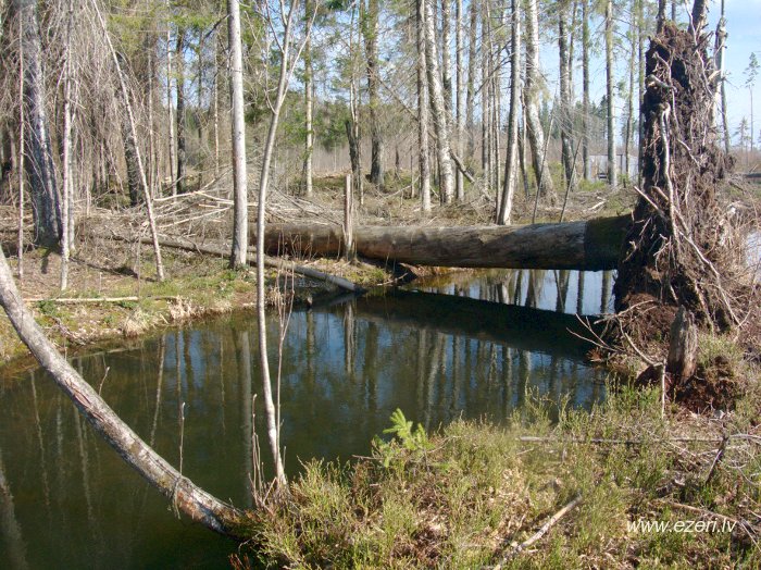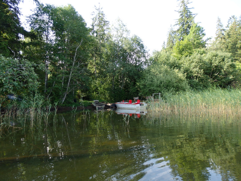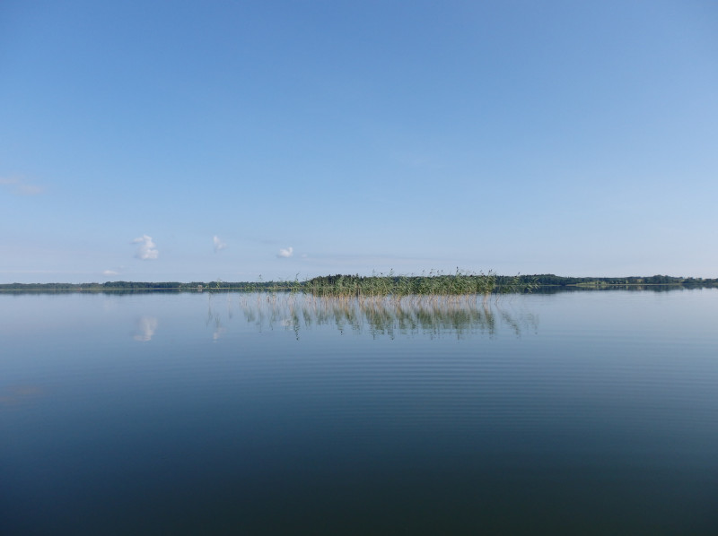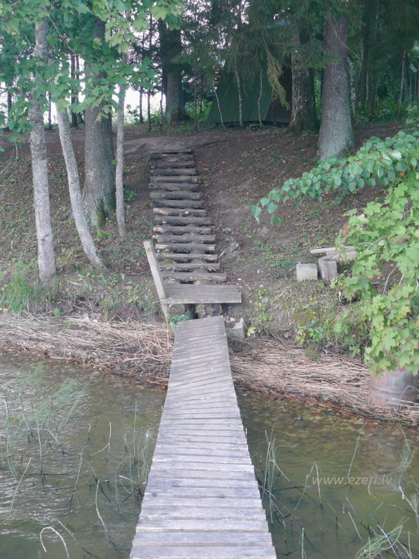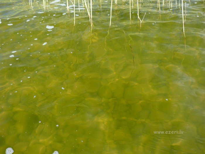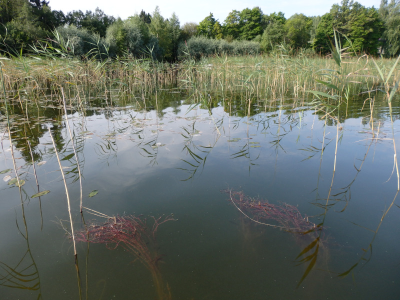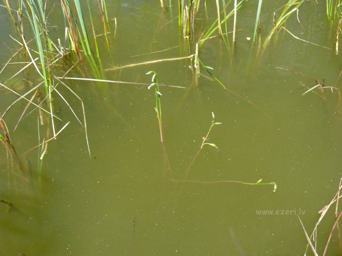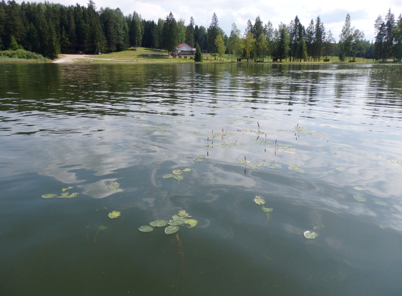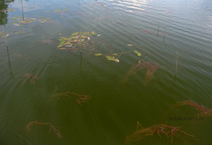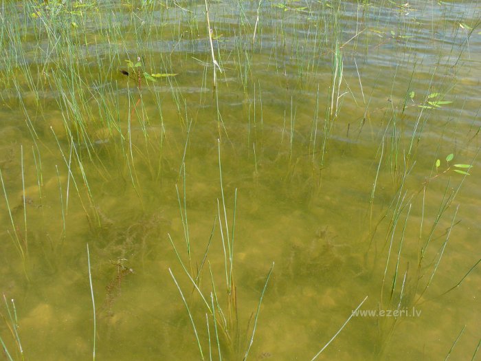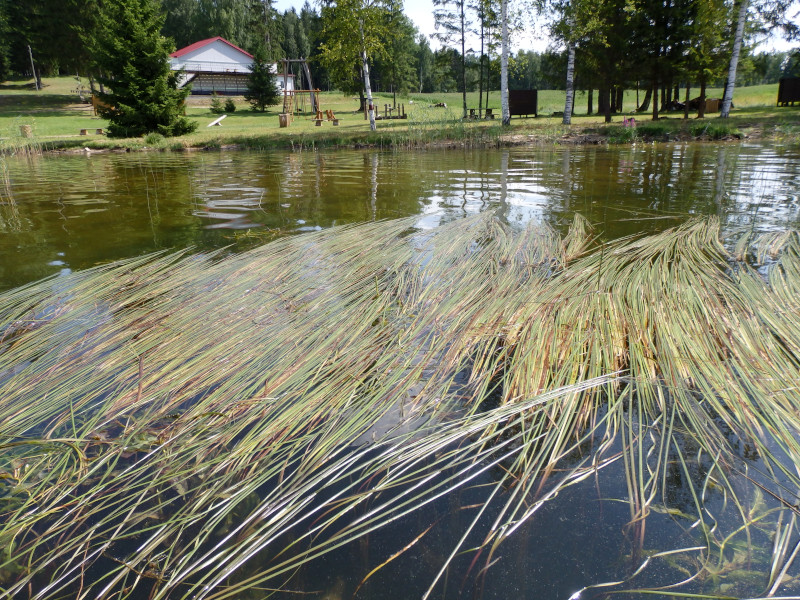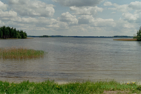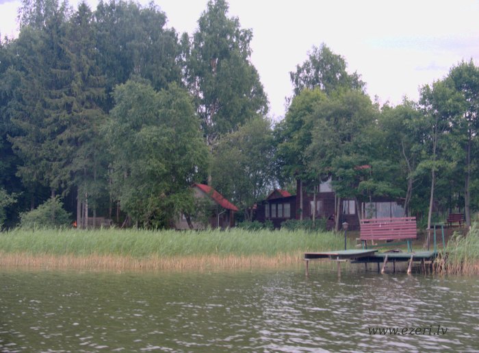 photograph Gar ūdeni zems, krūmiem un niedrēm aizaudzis krasts, pēc 20 m - krasta valnis. |