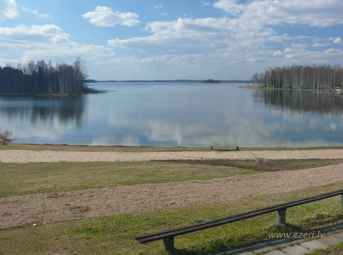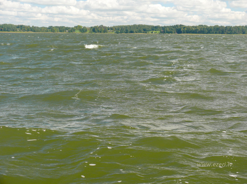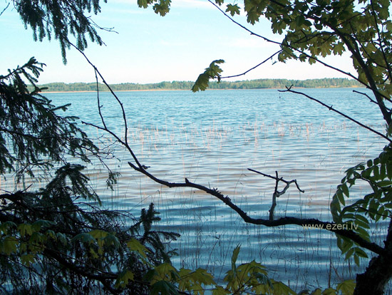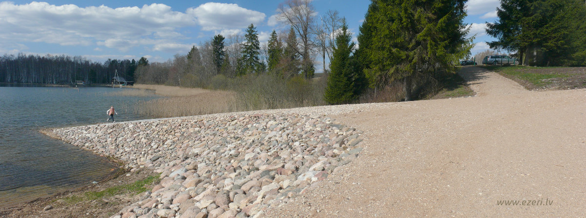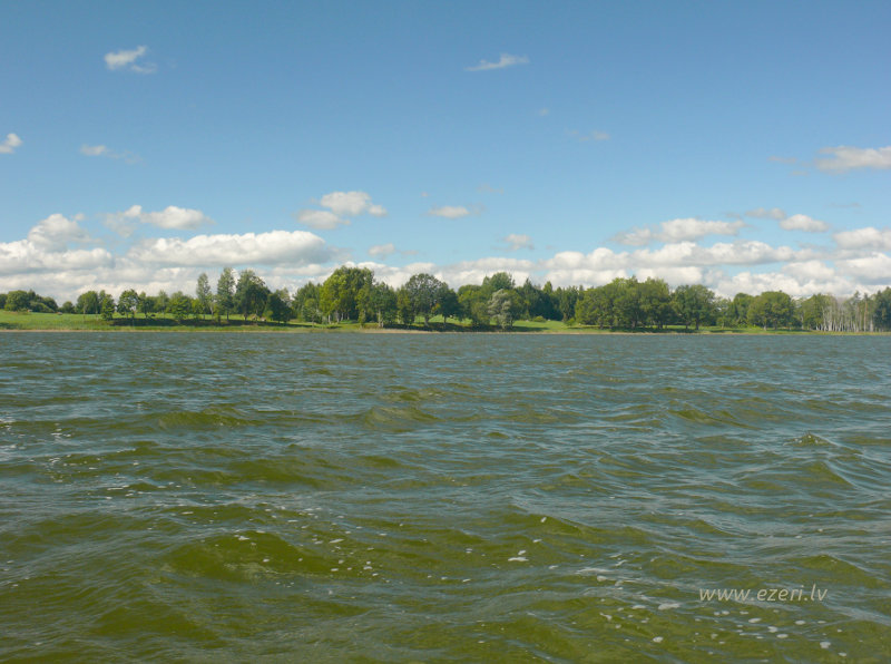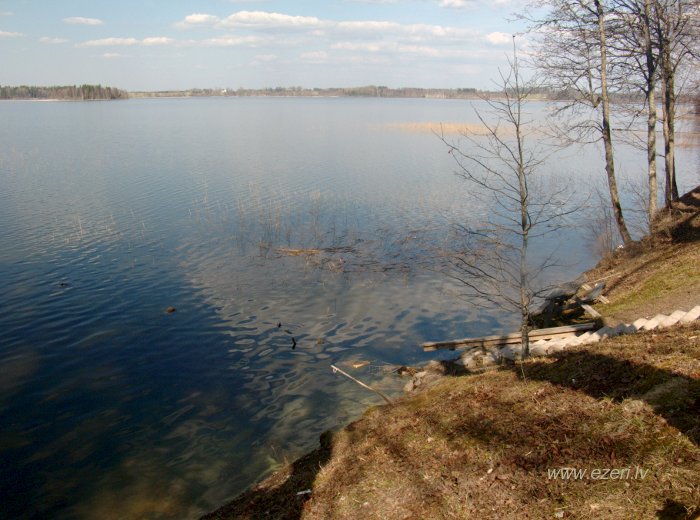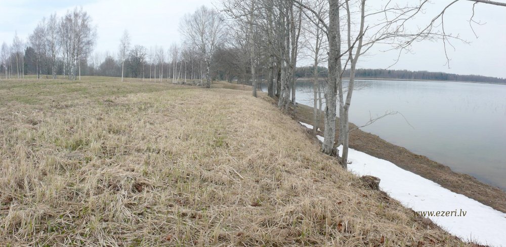 photograph Panorāma. Slīpais ZR krasts beidzas ar valnis, gar ezeru zems krasts. |