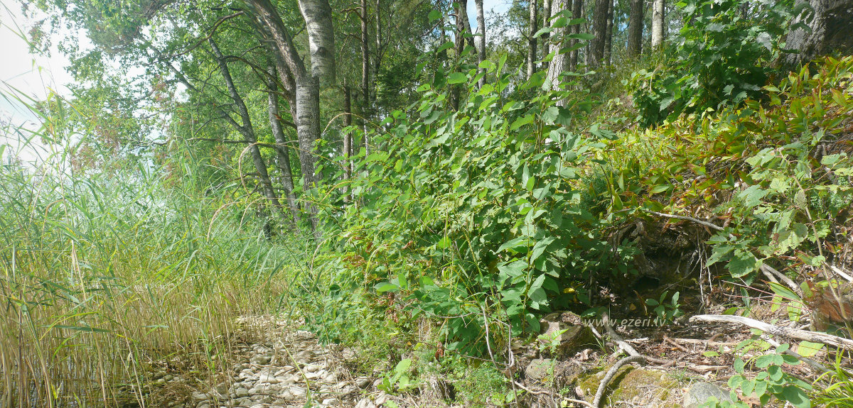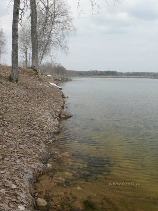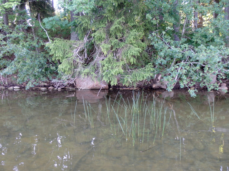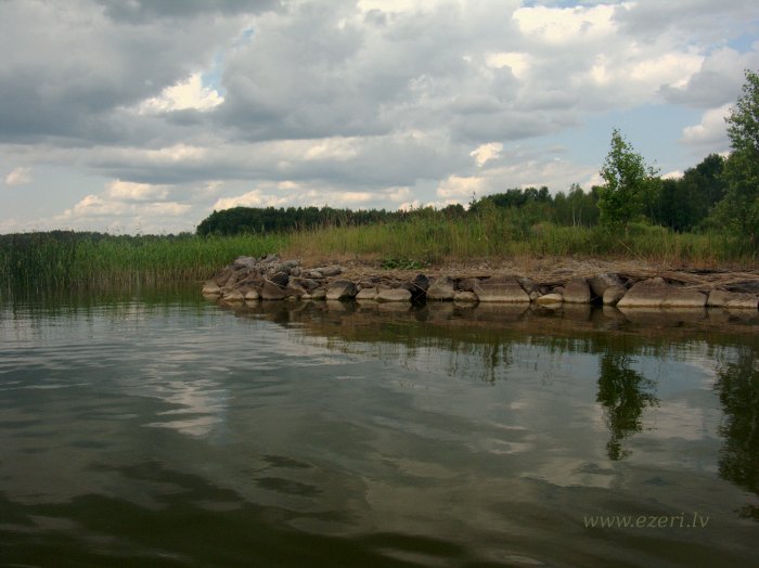photograph Aizaugušais "Cepļu" gals. Piekrastē vietām lieli akmeņi. |