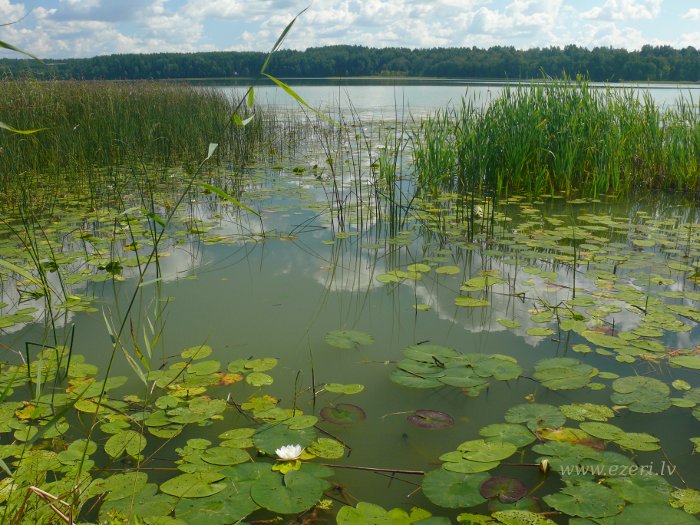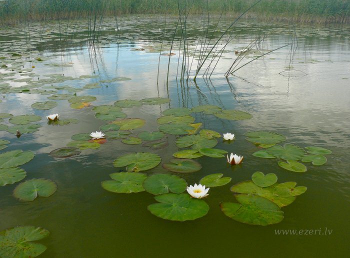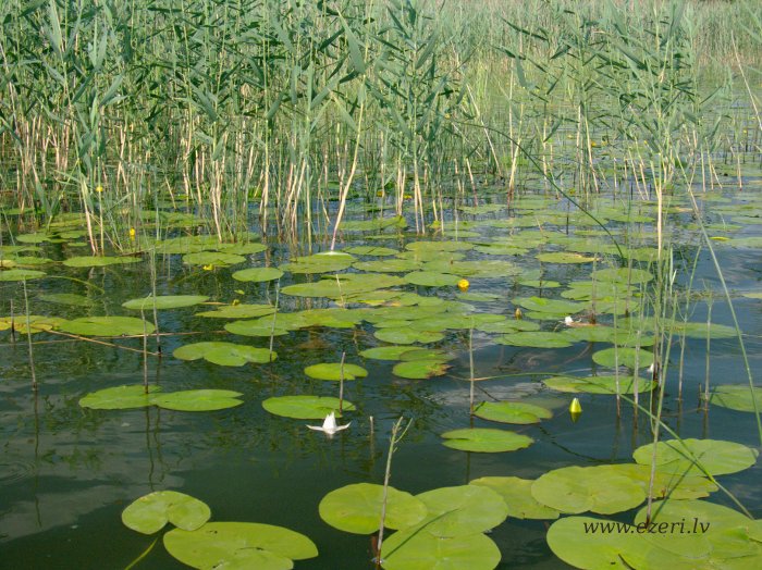 photograph Niedres, meldri un dzeltenās lēpes - dominējošās makrofītu sugas ezerā. |