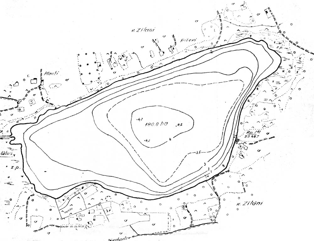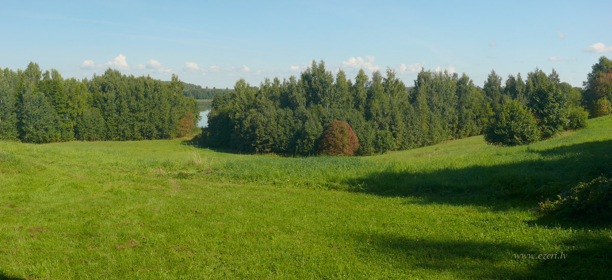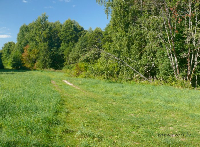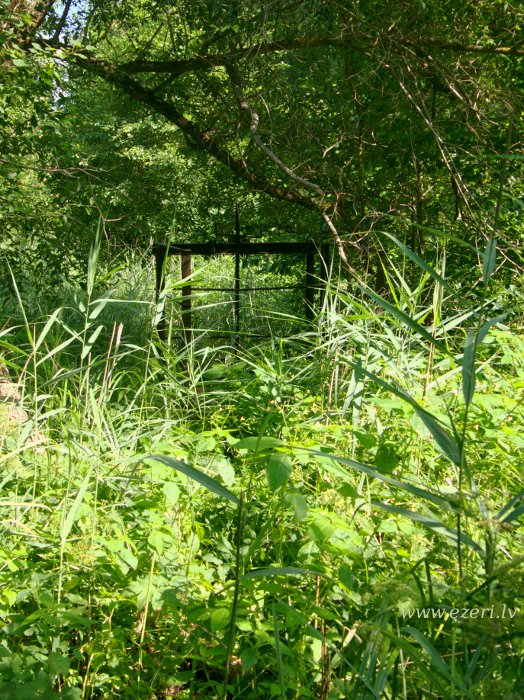 photograph ZA līcī aiz niedrēm aizauguma josla platāka, bet peldlapu josla nav blīva. |