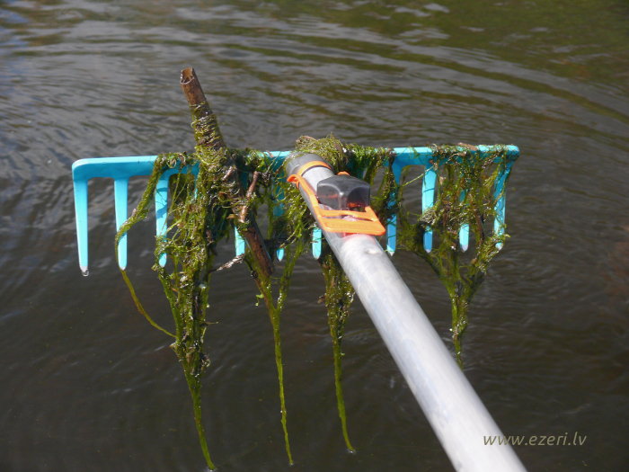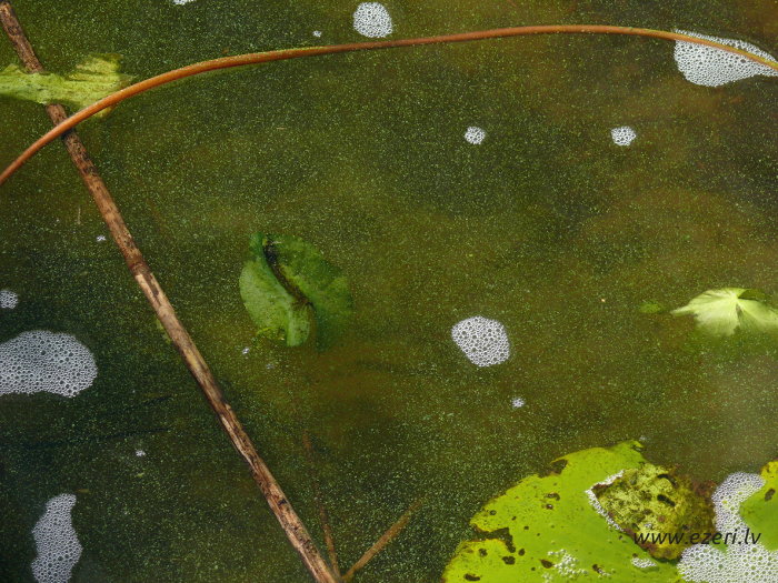 photograph DR līcis. Ūdenī peld no ezera gultnes uzpeldējušie zilaļģu "gabaliņi". |