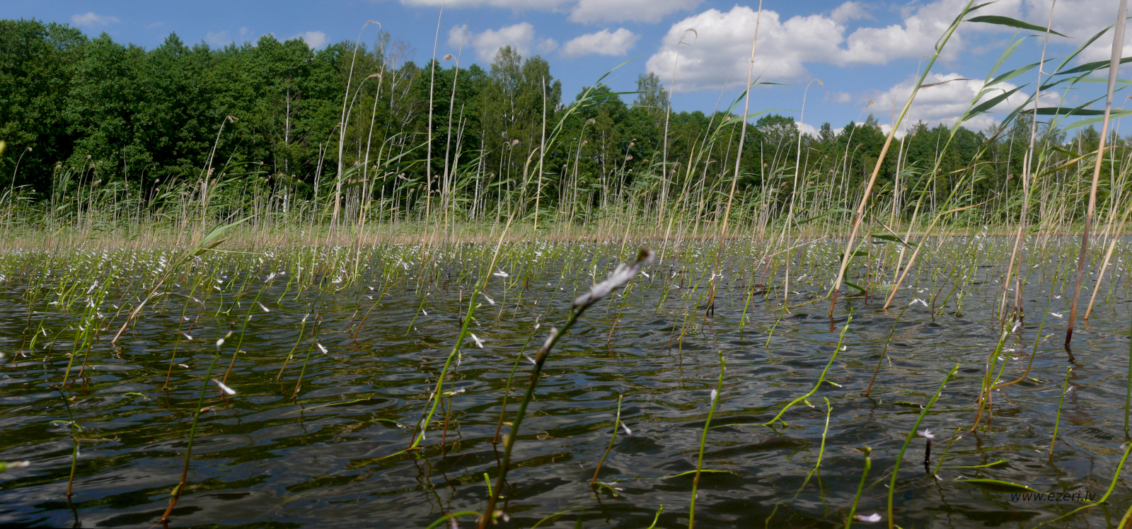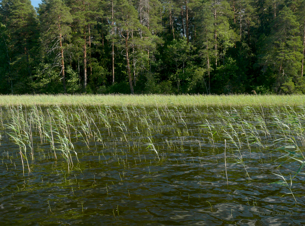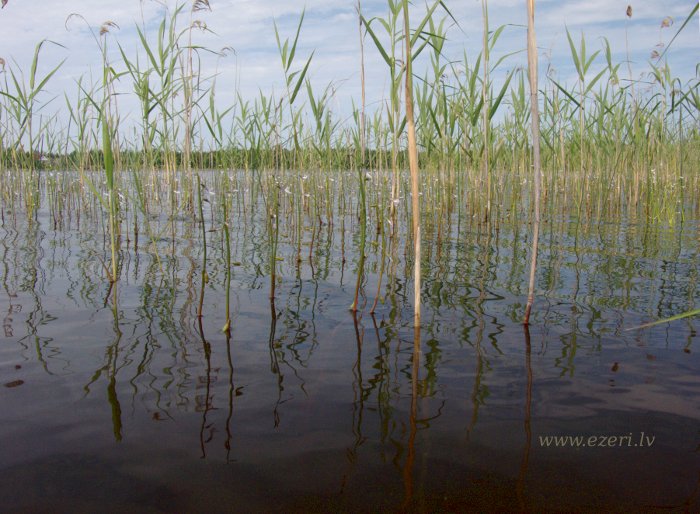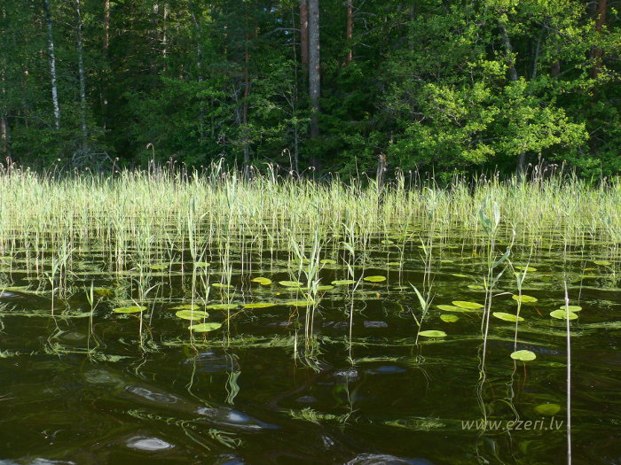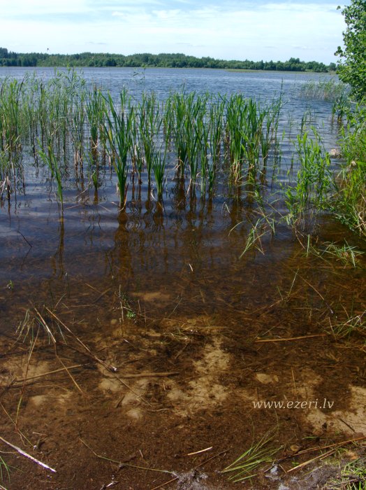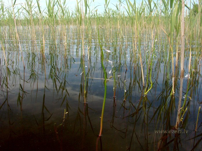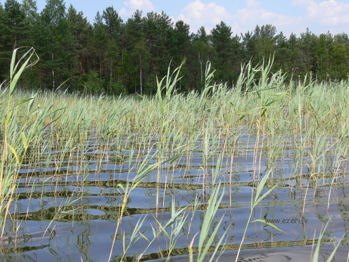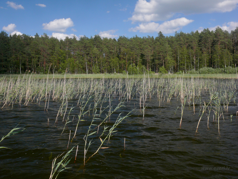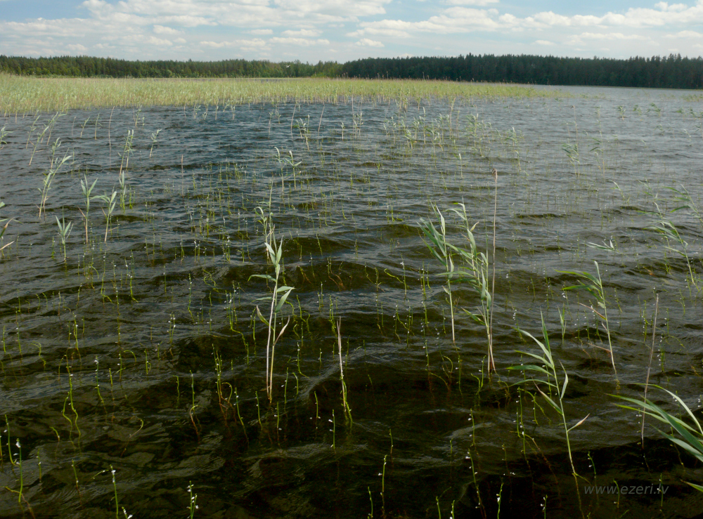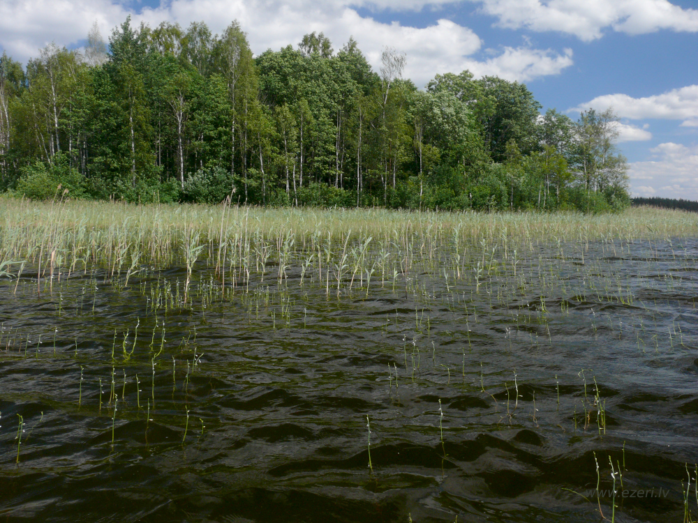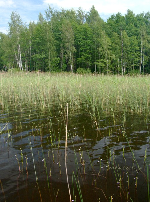 photograph Raksturīgas plašas seklūdens zonas ar skrajām niedrēm un lobēlijām. |