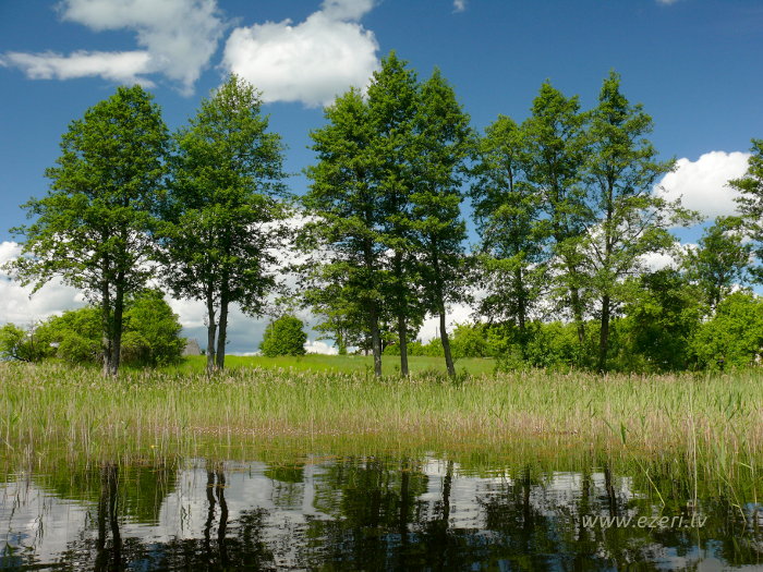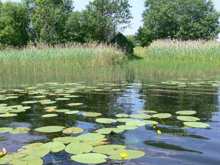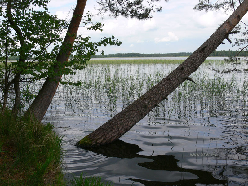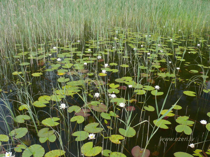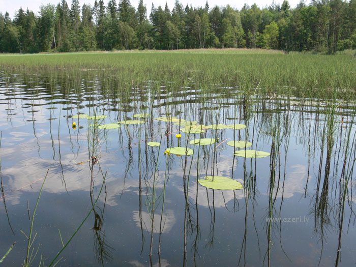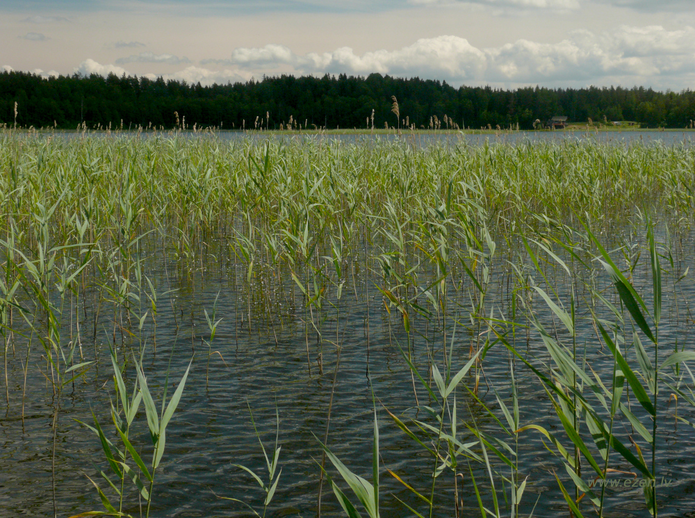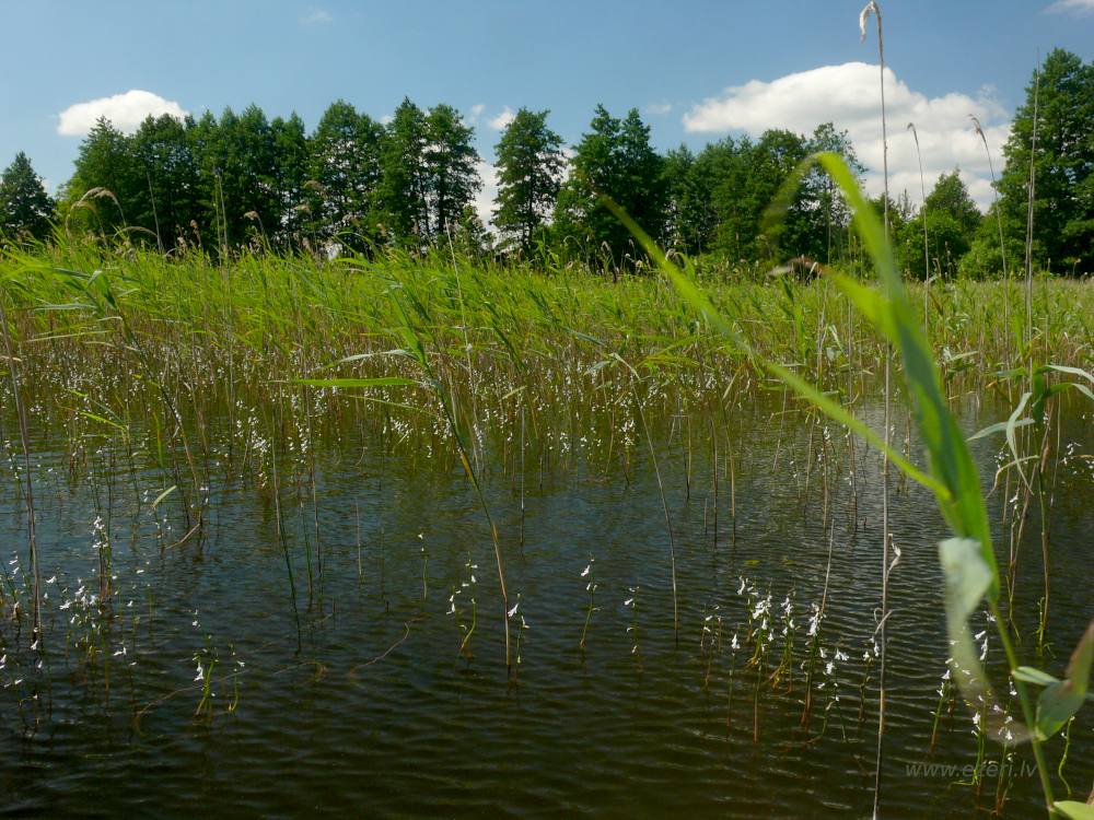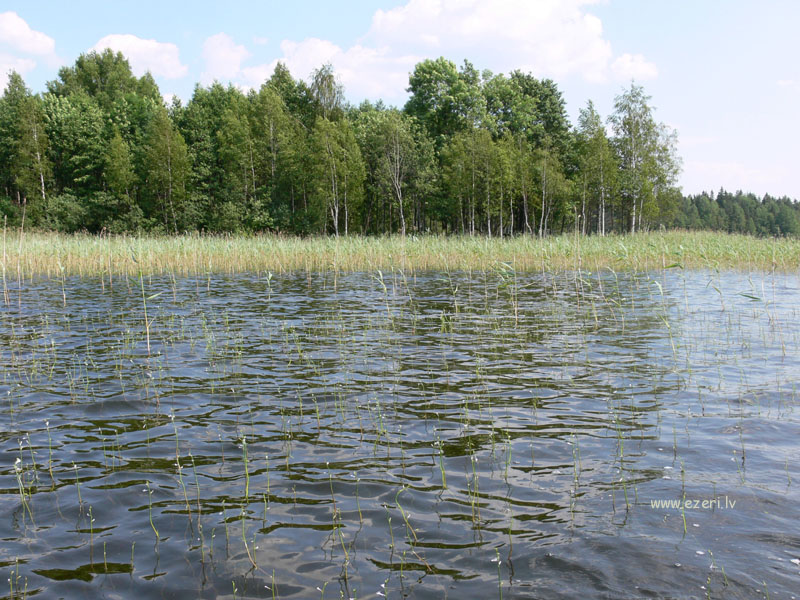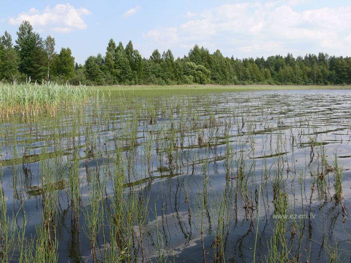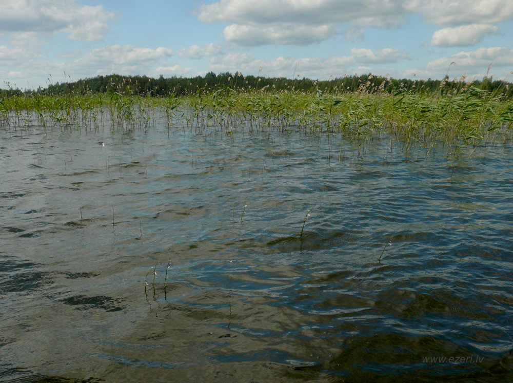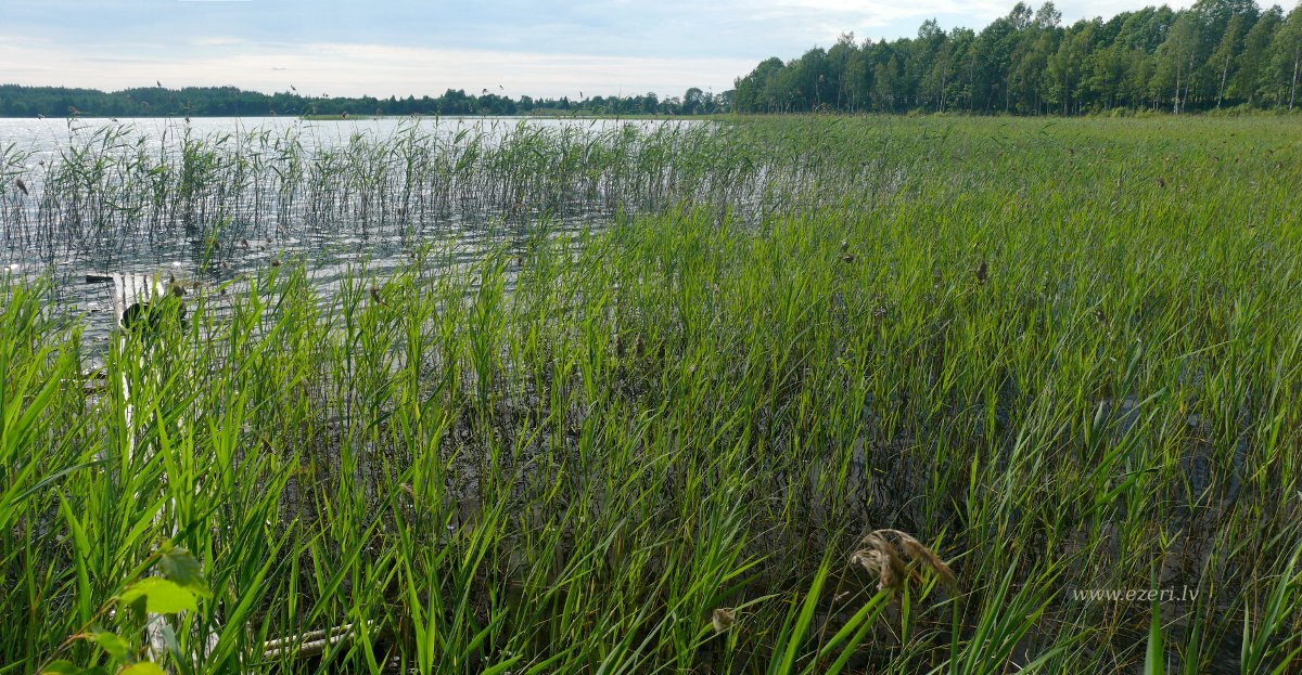 photograph Raksturīgas plašas seklūdens zonas ar skrajām niedrēm un lobēlijām. |