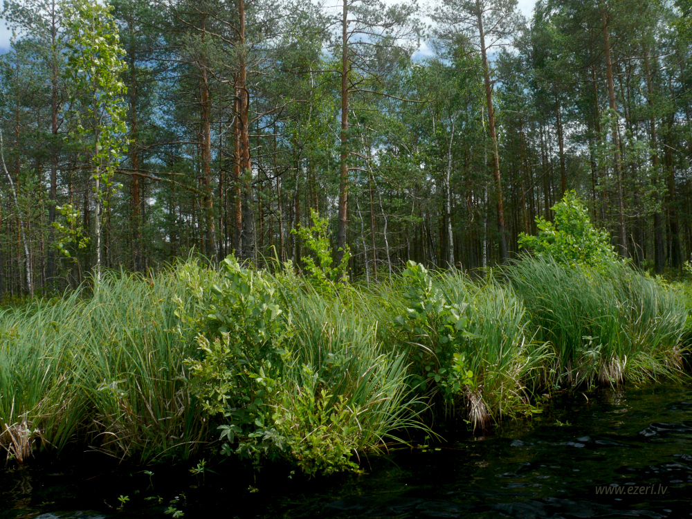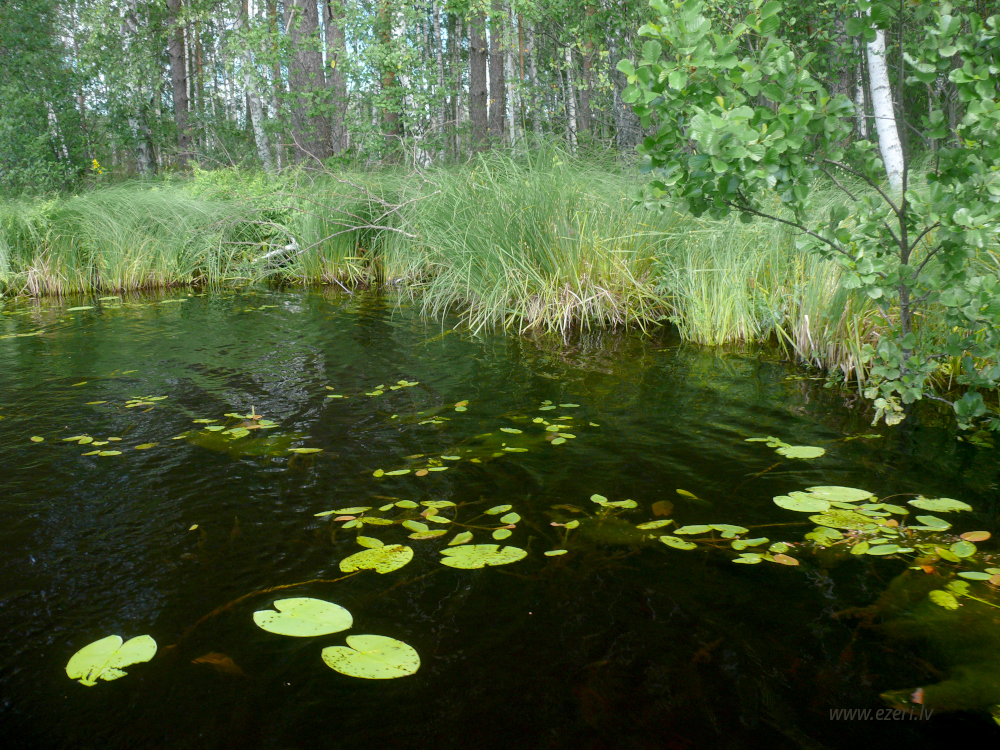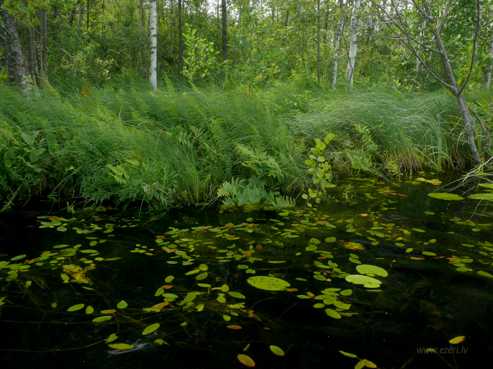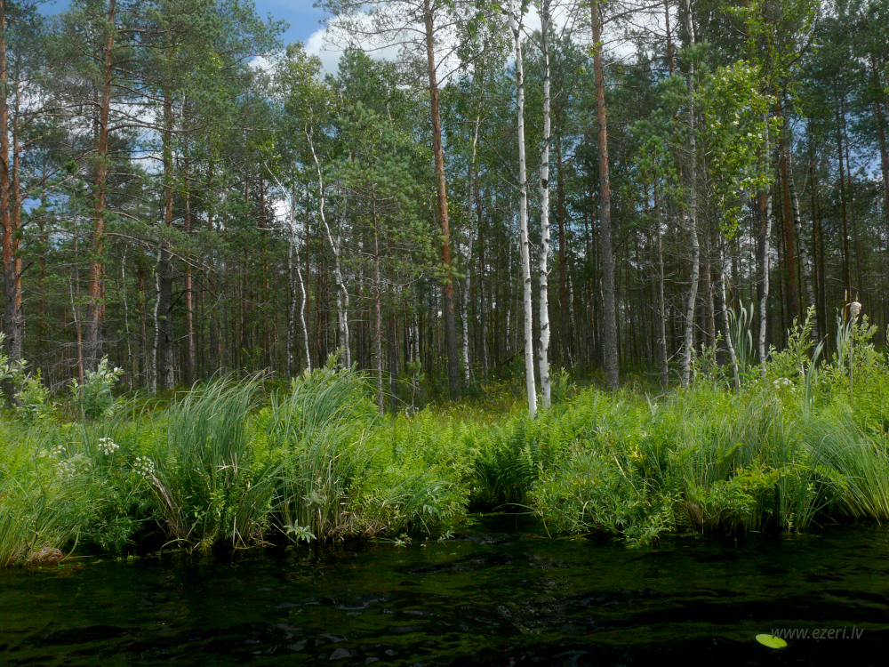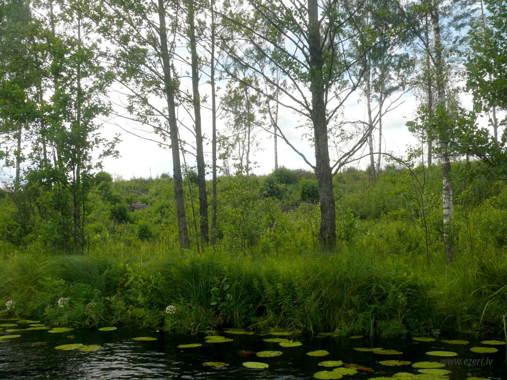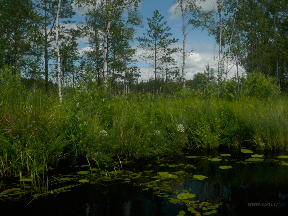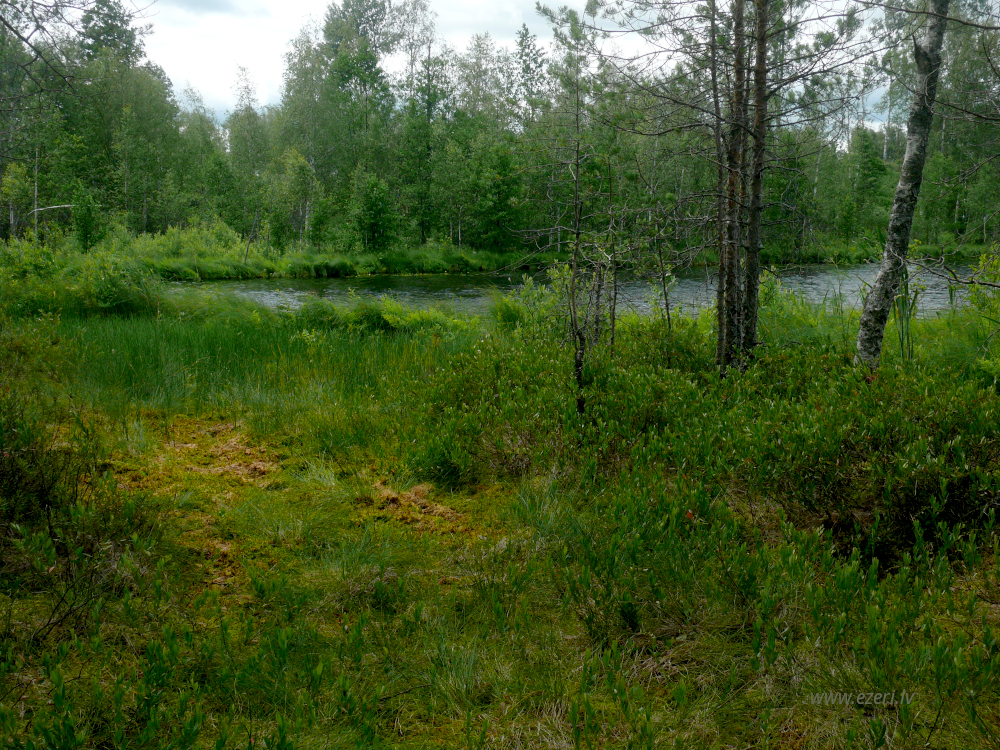 photograph ZA virzienā no ezera - zema, purvaina teritorija. |