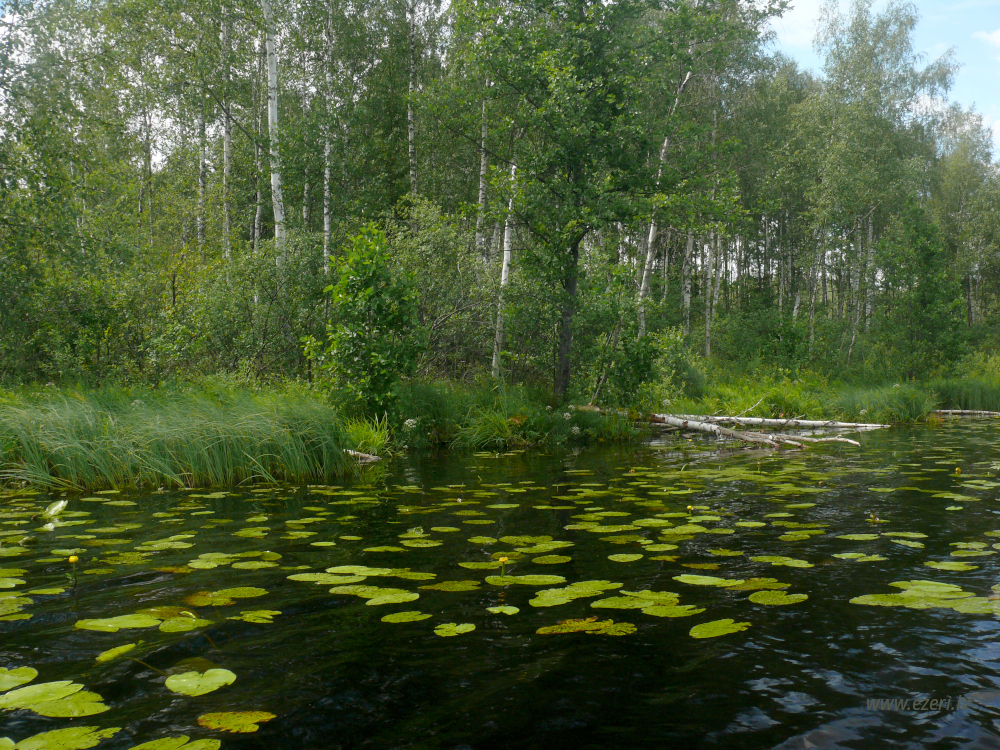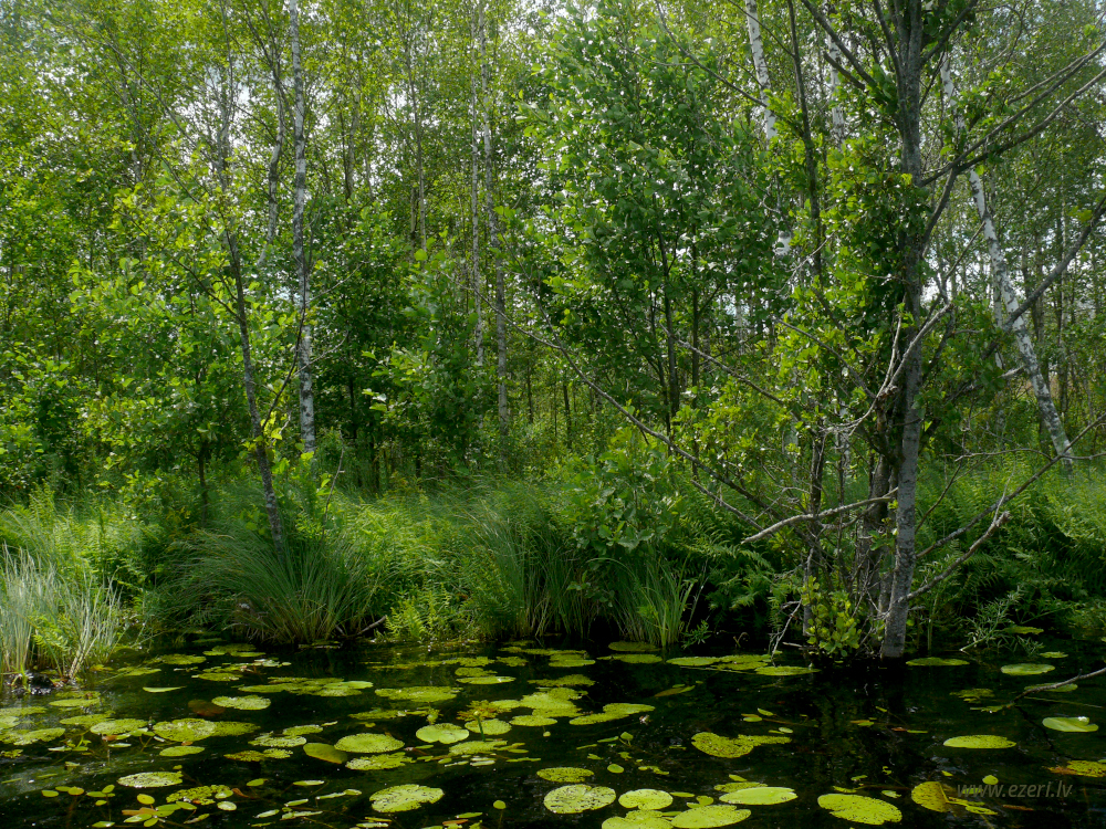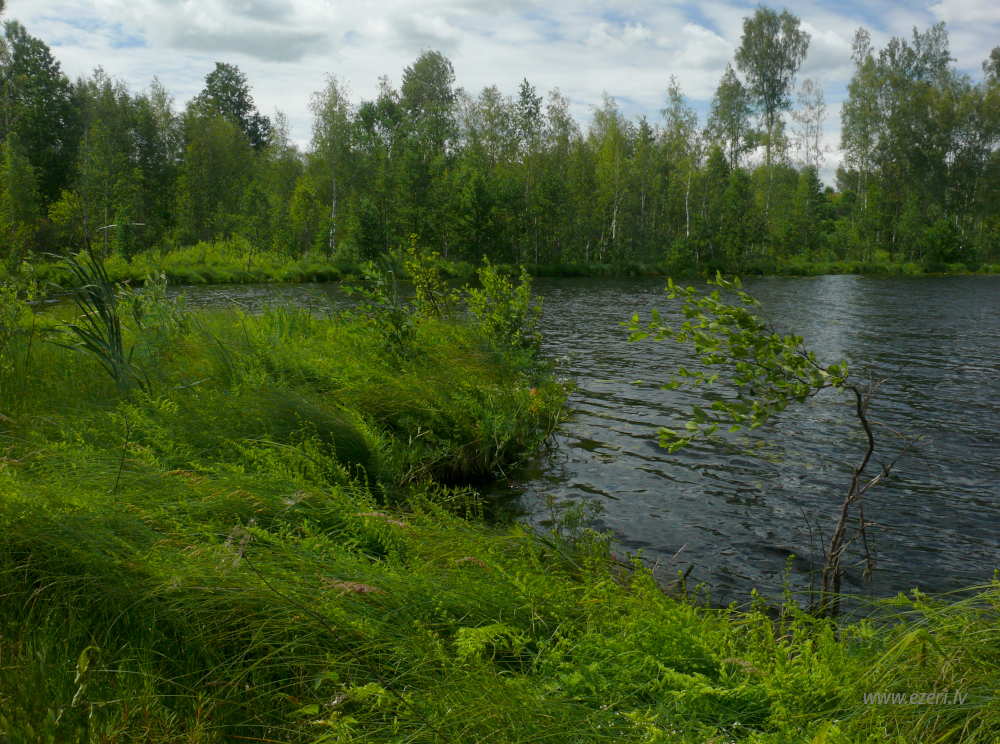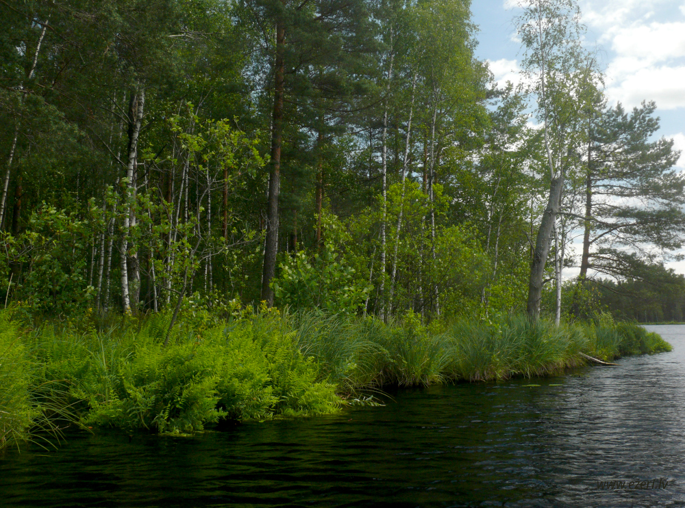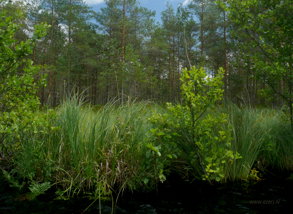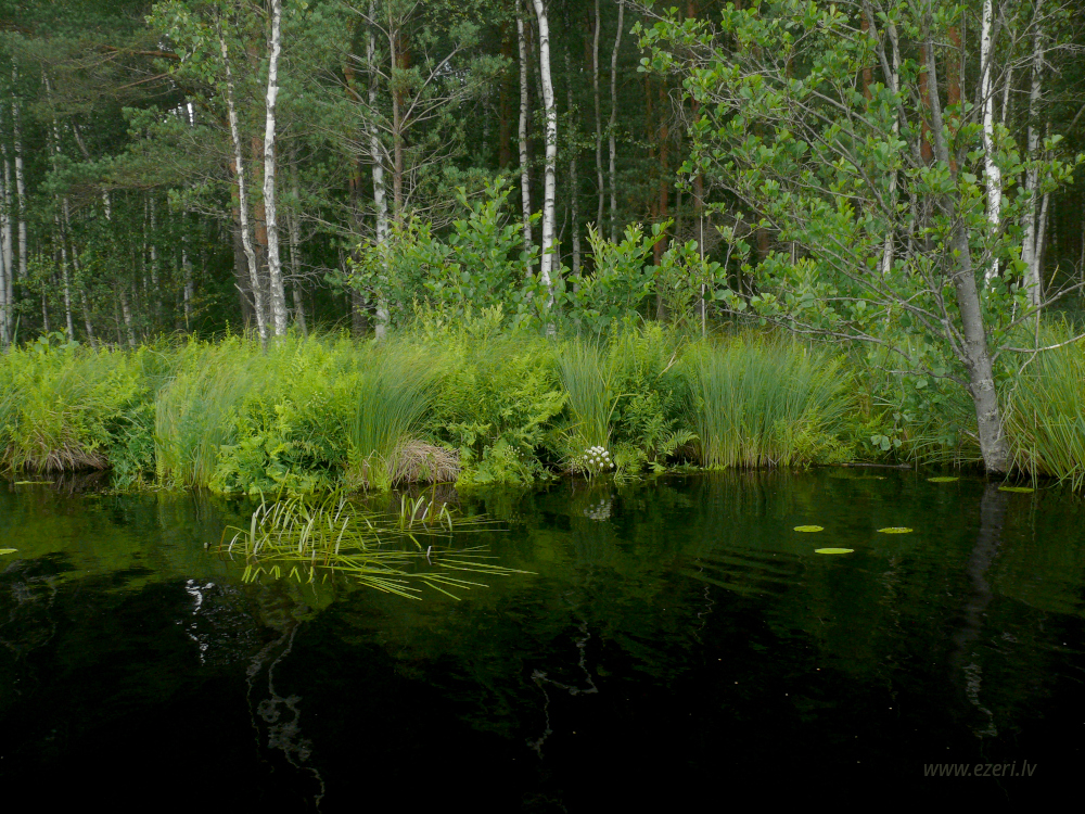 photograph ZA virzienā no ezera - zema, purvaina teritorija. |