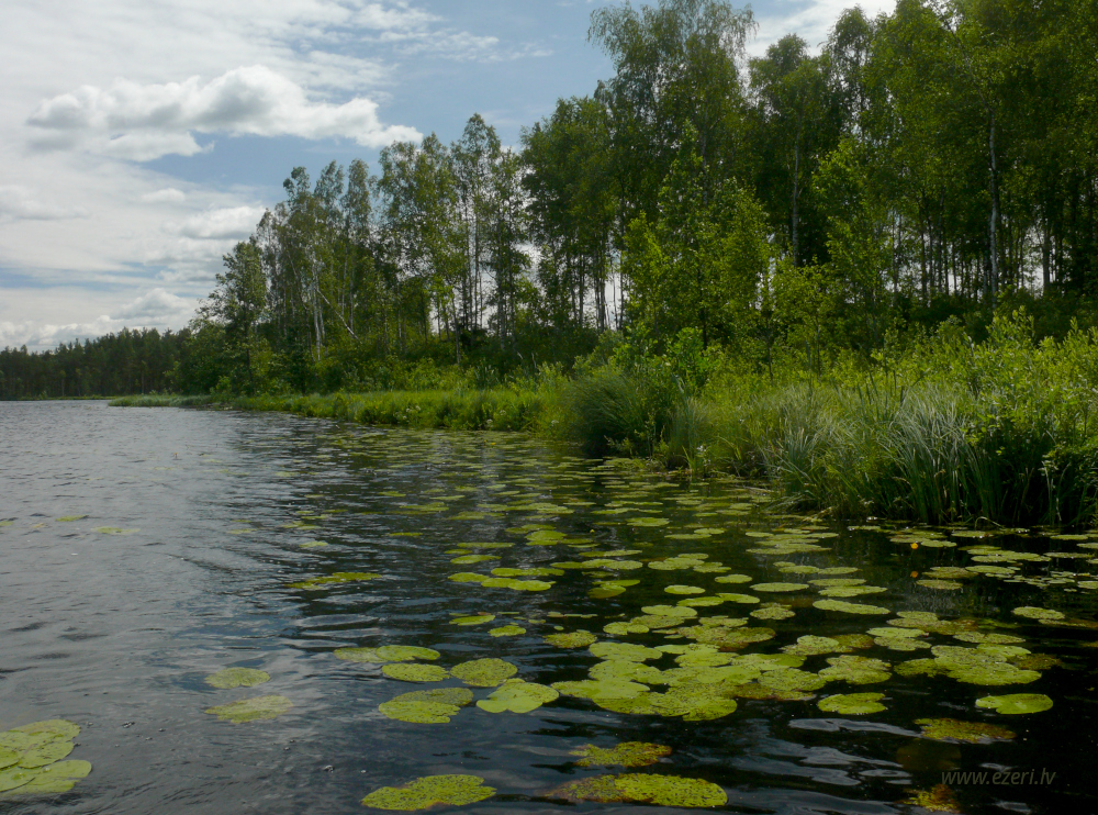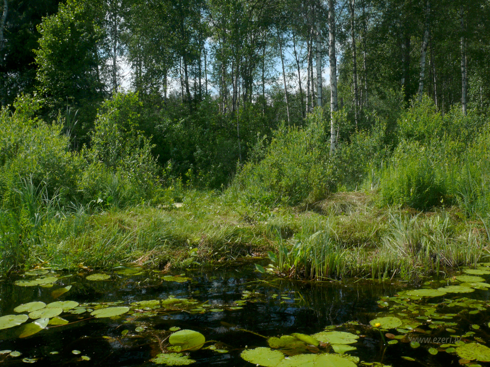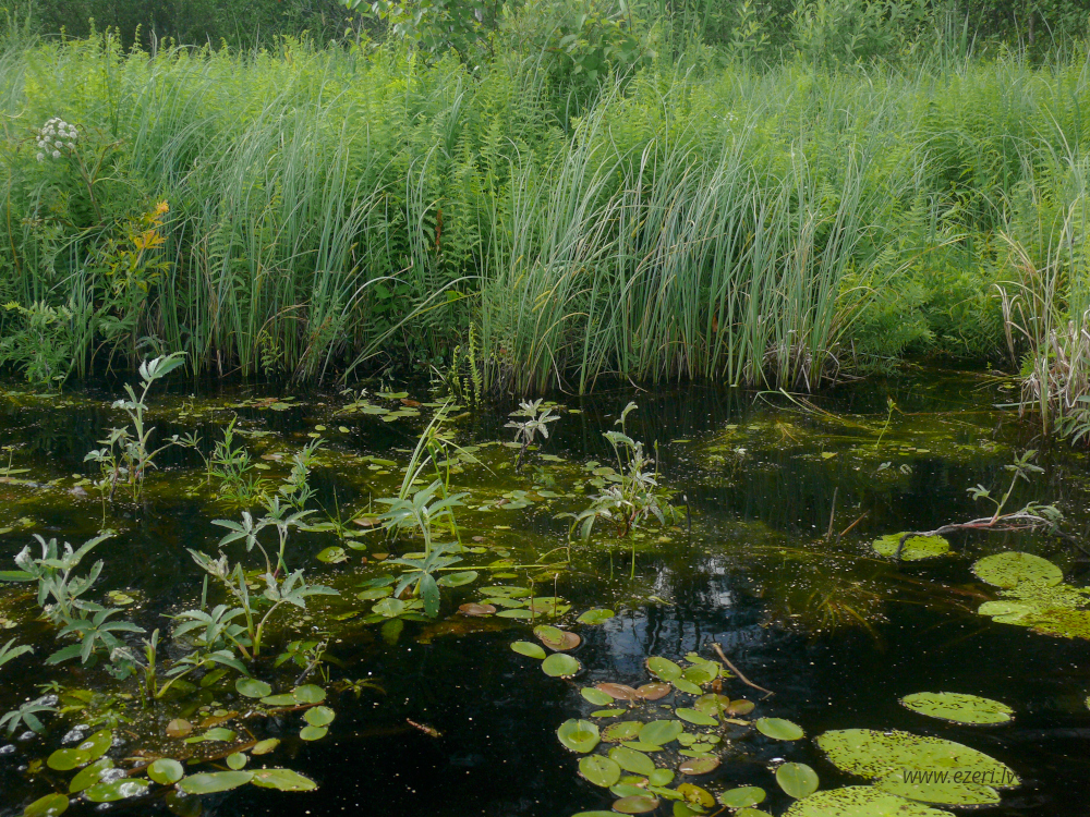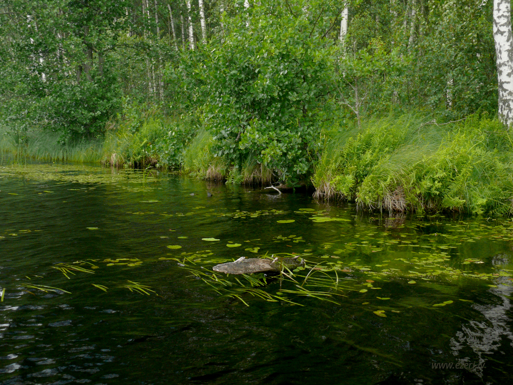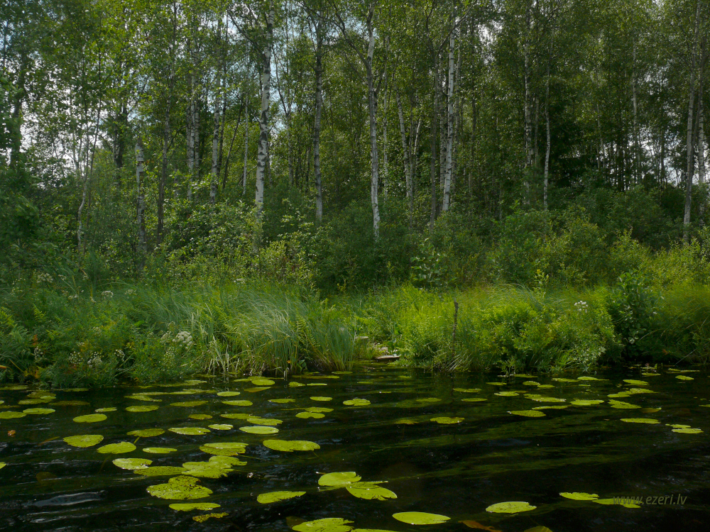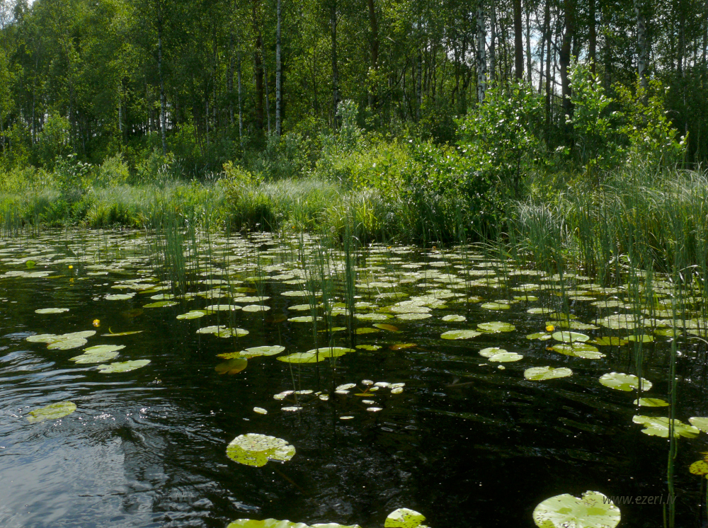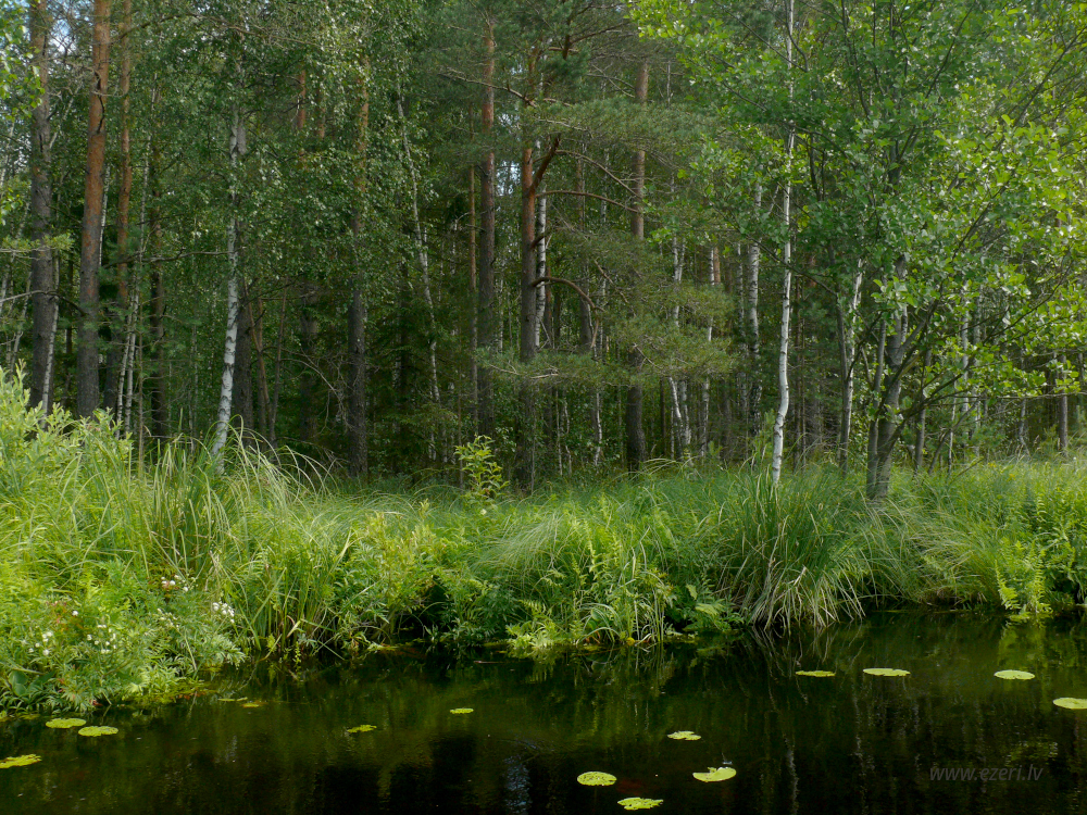 photograph ZA virzienā no ezera - zema, purvaina teritorija. |