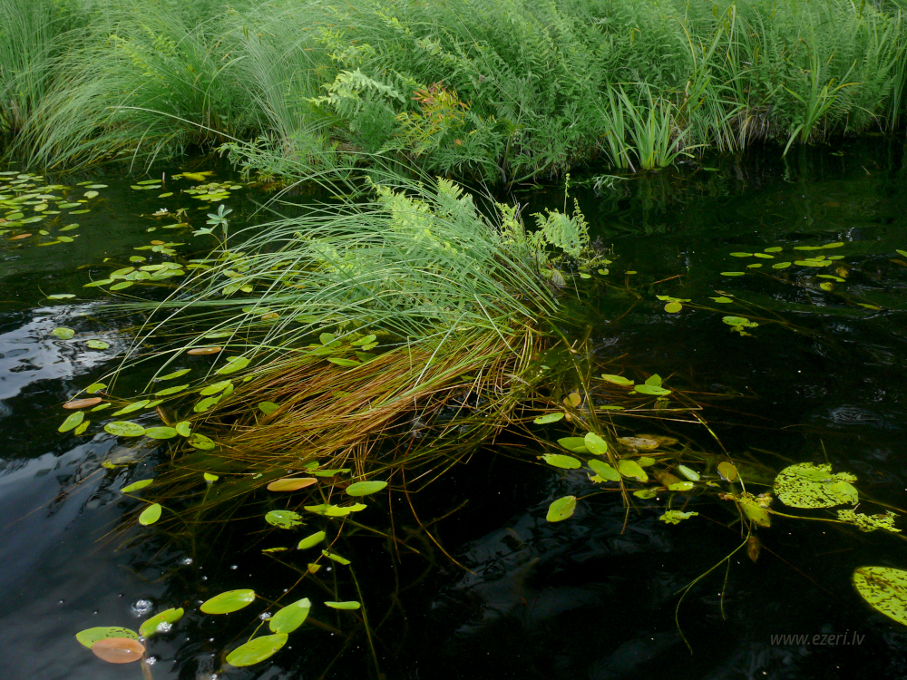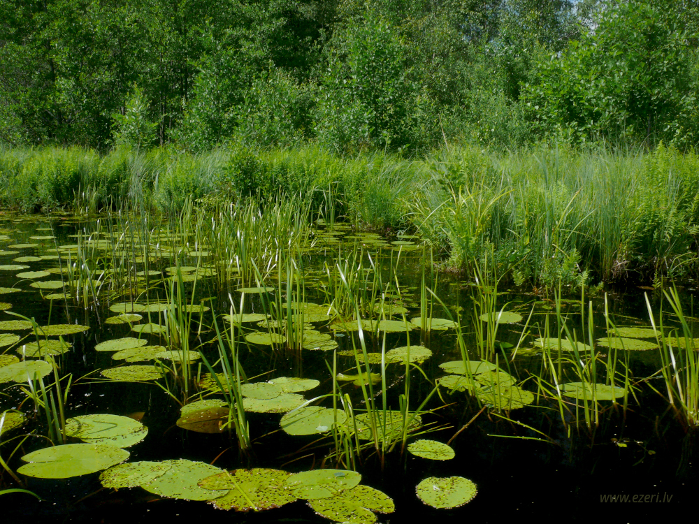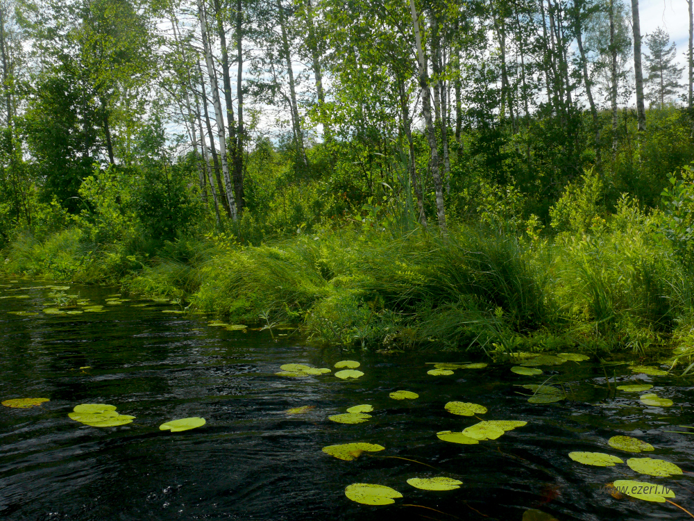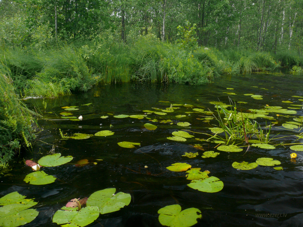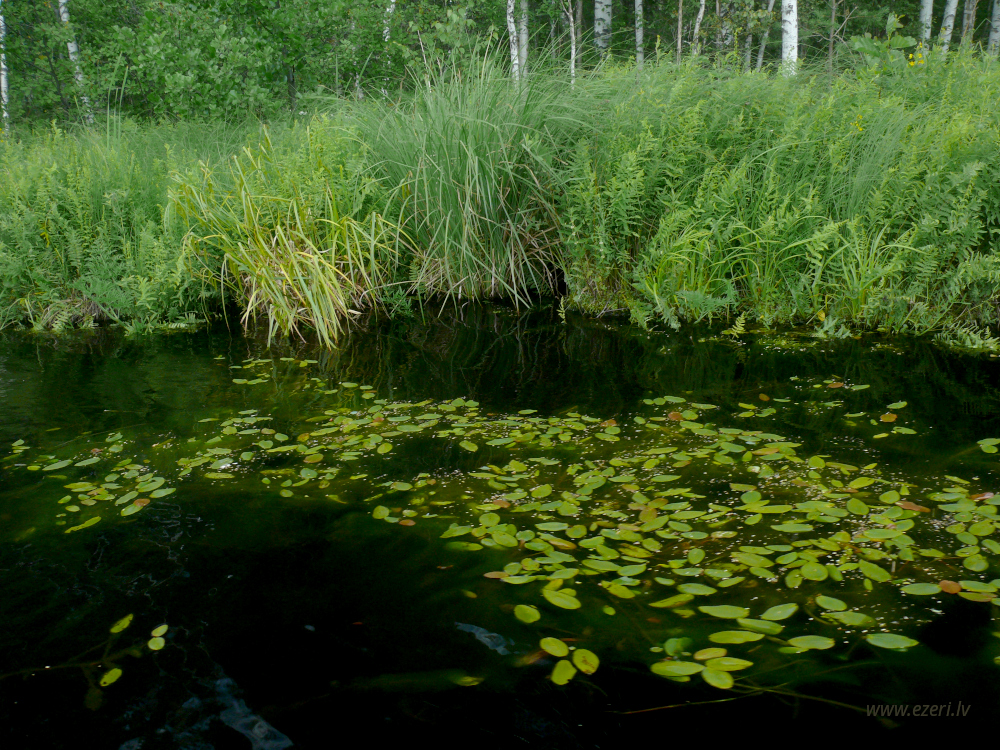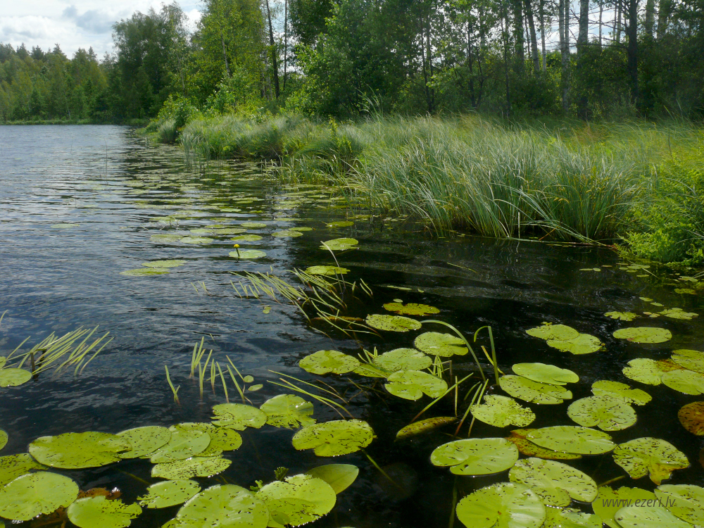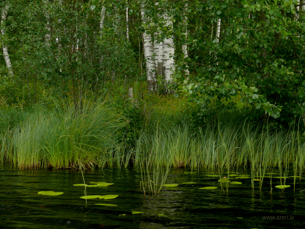 photograph ZA virzienā no ezera - zema, purvaina teritorija. |